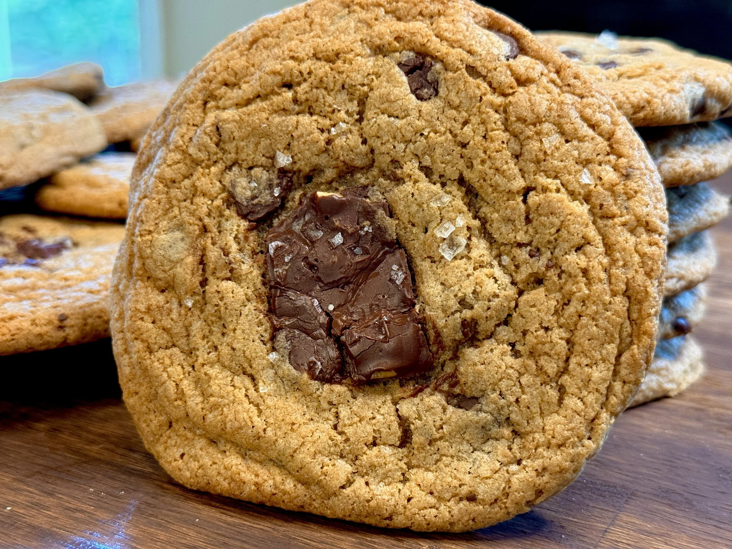 Indulge in our Classic Large Chocolate Chip Cookie, crafted with freshly milled flour for a fresh, wholesome foundation. Each cookie is generously studded with rich chocolate chips—and at its heart, a decadent silkychocolate poolcenter.